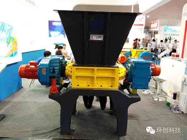 本次展會,環(huán)創(chuàng)主要展出了雙軸撕碎機(jī)、單軸撕碎機(jī)、高速粉碎機(jī)三臺單機(jī)設(shè)備以及未來應(yīng)用于自動化回收線實(shí)現(xiàn)自動分揀的機(jī)械手。20號為展會開始第一天,雖然廣州一整天都下著暴雨,但觀眾依然熱情高漲,到環(huán)創(chuàng)展臺詢問的國內(nèi)外客戶也絡(luò)繹不絕,很多客戶對環(huán)創(chuàng)展出的單軸撕碎機(jī)以及高速粉碎機(jī)的新穎設(shè)計(jì)以及諸多獨(dú)特亮點(diǎn)非常感興趣,現(xiàn)場有幾個(gè)客戶明確表達(dá)購買意愿,有兩位需要輪胎回收線的南美客戶在整個(gè)展館尋找環(huán)創(chuàng),終于在我們外貿(mào)經(jīng)理的引領(lǐng)下,來到展會現(xiàn)場考察,并做深入探討。